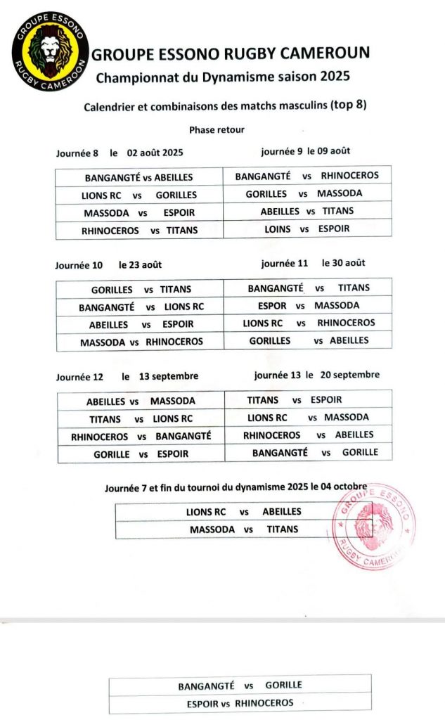 Selon la réunion tenue par le directeur du tournoi, Luc Tonye, et les promoteurs des clubs, les hostilités reprendront sur plusieurs stades retenus par le groupe Essono Rugby Cameroun.