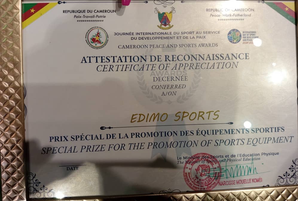 Huit catégories ont été mises en avant pour des distinctions particulières, à l’instar du « Prix Spécial de la promotion des équipements sportifs » . C’est madame Danielle Edimo Monefong, Directrice générale d’Edimo Sports, qui a reçu cette agréable attestation et trophée.